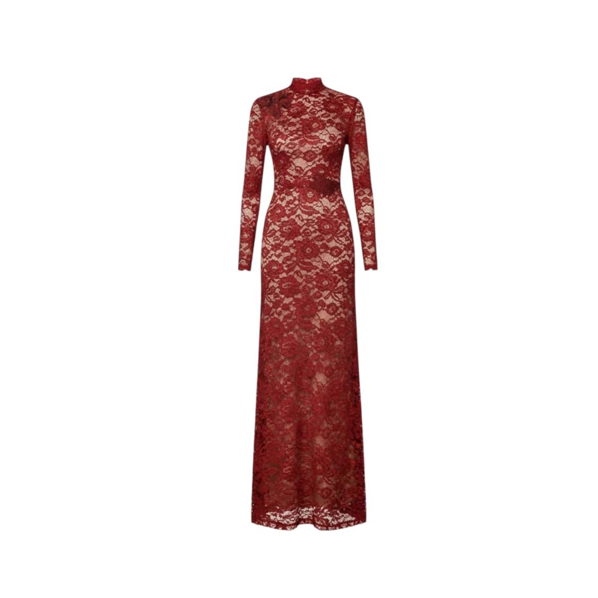 This stunning bordeaux maxi dress feature a sophisticated design adorned with intricate 3D flowers ,making it a statement  piece for any special occasion.The dress showcases a graceful open back that adds a touch of allure,while the nude lining provides contrast and enhances comfort.The long sleeves create an elegant silhouette,perfect for both formal fabric ensure ease of movement,making it ideal for dancing the night away or enjoying a sunset.Embrace elegance and feminity with this enchanting bordeaux dress .