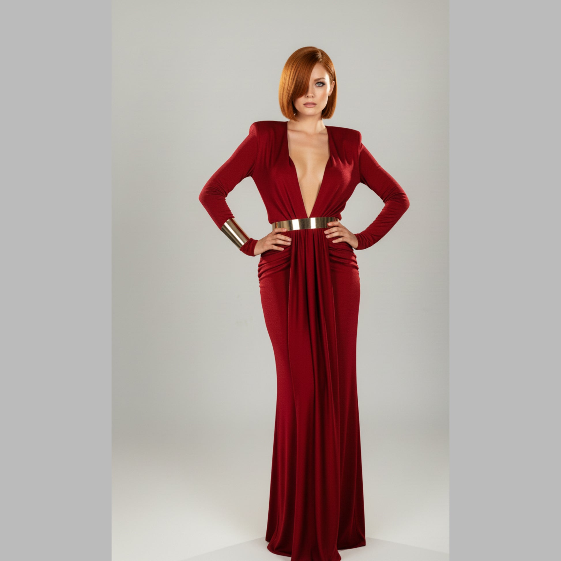 Embrace elegance and sophistication with this stunning Bordeaux dress, maxi dress. Crafted from a flowy, lightweight fabric, it drapes beautifully to enhance your silhouette. The long sleeves offer a touch of modesty while still allowing for breathability, making it perfect for various occasions throughout the year.